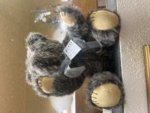 Big dark teddy bear with silver bow