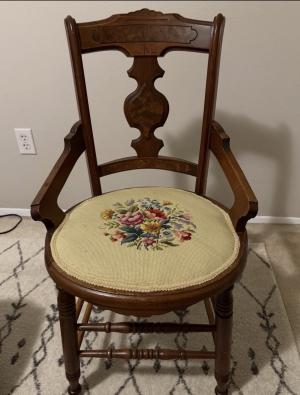 Description: Gorgeous yellow and floral needlepoint on the seat