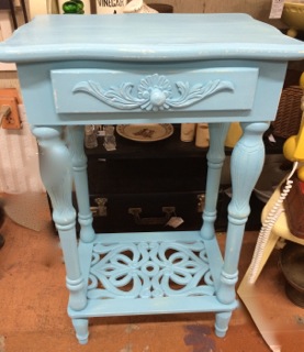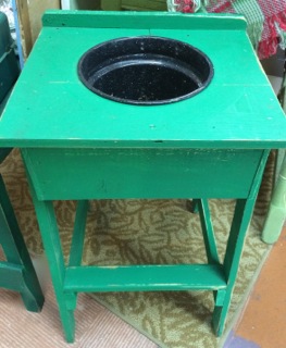 Dealer #44 has an unusual take on a wooden planter; a bright green table/stand perfect for flowers in bloom!