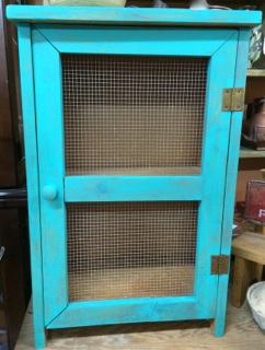 Dealer #57 has a screen door cupboard perfect to hang or rest tabletop. Teal blue never looked so good!