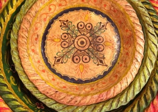 Stars Too has nesting serving bowls each with a central motif and wavy pinched edges in a mix of colors.
