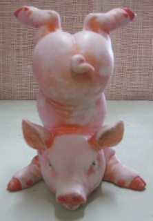 Adding to the current popularity of piglets; Dealer #8 has this German porcelain pig doing acrobatic moves!