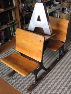 Dealer #48 features this vintage wooden school desk topped off with a large letter A. Let's look at the Abc's of learning for children as we wander through the stores.