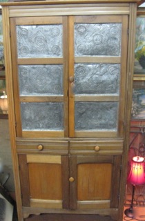 Detail of punched tin panels in this wonderful pie cupboard from Dealer #153.