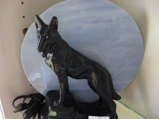 German Shepherds have long been a favorite! Dealer #116 has this stately ceramic Shepherd lamp available in her glass case.