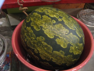 Several petite melons nest in colorful bowls at Stars Too.