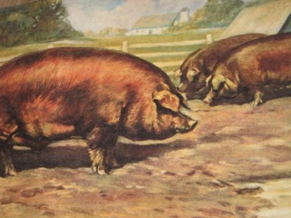 It used to be the pig was out with the others in the pen at the farm, as pictured in this vintage magazine image from Stars Too! Those days have changed as we now open up our homes to our pet pigs!! My neighbor has three piglets and they are small now and squeal with glee as they wiggle in your arms. Miss Piggy, Petunia, and Mr B are expected to grow to 80-100 pounds!!