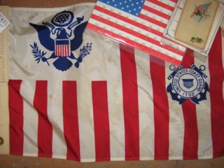 The Coast Guard flag joins forces with an American flag and vintage greeting card. All available from Dealer #24.