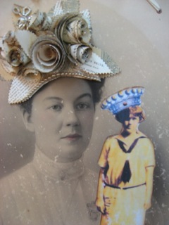 Join us daily at the Stars stores for treasure-hunting; but Sunday celebrate Mom! Bring her along for a walk through the stores to reminisce days gone by, share a few good laughs as you see things you grew up with, and let her know how much you care. Dealer #45 has a way with vintage papers and old photographs!! These sisters rock when it comes to creating great visuals. A vintage portrait gets a 3-D crown and is joined by a "stand-up" photo cutout.