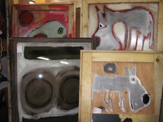 There is no question that Dealer #1 is a prolific painter with unique subject matter and bold strokes of color. Did you know many of the frames are made from old cedar fence panels and old doors and lumber serve as the actual canvas? Even the paint is recycled!