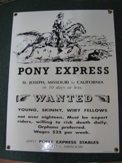 A humorous reproduction advertisement for the Pony Express from Dealer # 24. Read the fine print before applying for this job!