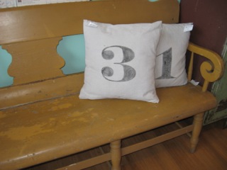 Stars Too has a wonderful bench for the porch or entryway. Great color and details make it a conversation piece. Throw pillows add a punch with stenciled numbers. Sit back, relax, and while away the hours while we watch March fade out to April.