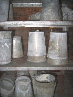 Love this small screen door cupboard holding a number of galvanized tins. Nesting in quiet disarray, visible, and ready for seed starts, come to Stars Too and start getting the potting shed equipped.