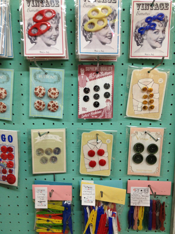 Stars has a newish dealer in the far back corner. She has the most fabulous retro things on her wall. Each time we walk by, we always have to stop and shop. Here is an example. We LOVE this collection of vintage buttons. The more the merrier is our collecting mantra.