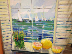 This is just a piece of a larger painting that Dealer 8 has for sale. We love still life paintings with fruit in them. It looks good enough to eat.
