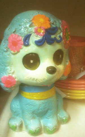 With an dog collar that reads Alpo, you pretty much know what this kind of dog is. A chowhound. Funny thing, we think this doggie is really a cookie jar.