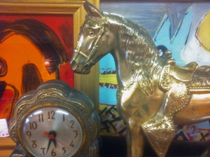 We think that we have that wrong? It should be horse sense.....but we like our clever turn of phrase anyway. Dealer 1 has this vintage horse clock for $20. We have seen them for much more. What a deal.
