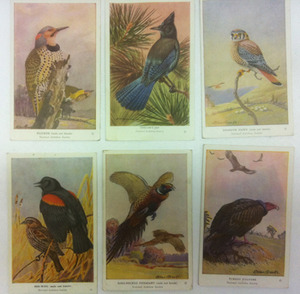Dealer 99 has a collection of these fab bird cards. We can see a whole flock of them framed together or separating. Groups of like things clustered together is the way to decorate. Each bird card is $12.50.