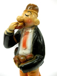Dealer 19 always has something in her showcase that makes us laugh when we are out Let's Shop shopping. Wimpy is a fine example. No, he is not eating turkey but he is eating the All American meal, a burger. And he is a rare bird himself. Priced at $250 for this wonderful chalkware piece.