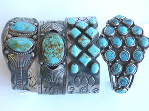 When collecting that is our motto. You can never have too much. Less not more. And the list goes on and on. Dealer 153 has a showcase filled with Indian turquoise jewelry. We have a fondness for the turq and silver bracelets. Buy one, buy them all, this dealer is always willing to give you a good price. She has these bracelets priced at $185 to $225. Try getting those kinds of prices in Santa Fe.