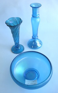 Stetch glass is something we really didn't know about but Dealer 85 has a nice collection of this lovely blue hued glass. Also the story about how and when this glass was made in the 1900 to 1930's. Facinating information. The bowl is priced at $39, the vase is $29 and the candlstick is $31. Come in and read the story. Information is knowledge.