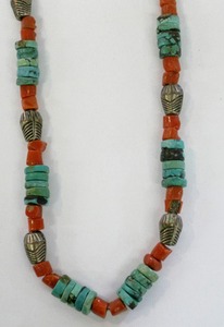 Everyone needs a touch of red in their lives. This is one chic touch. Love, love this red coral and turquoise necklace from Dealer 153. She has it priced at $95.