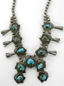 This week we stopped to look in at Dealer 153's showcase at Stars and we never left. Dealer 153 has an extensive collection of lovely turquoise pieces. Our heart is very fond of this type of jewelry. Come see what we picked out this week. Let's Shop for turquoise jewelry together. If squash were this pretty we would not have a problem with it. This squash blossom necklace is a show stopper. Dealer 153 has it price at $325.