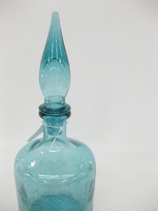 Where would mid century decor be without colored glass. We spied this decanter in Dealer 116's showcase and made a beeline to check it out. Priced at only $16. What a find!