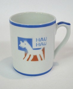 This dog cup is a bit rare with its Arabia mark. Dealer 9 is offering it for $45. We liked the graphic quality of the cup.