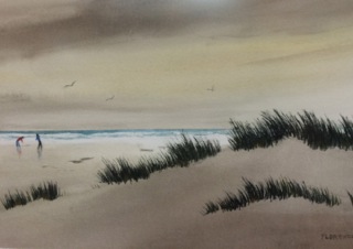 Dealer #77 features a watercolor which captures the essence of true Oregonians who enjoy a cloudy and rainy day at the ocean!