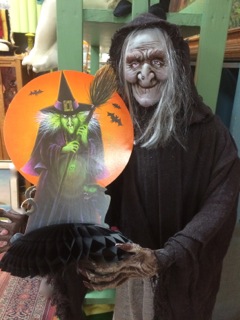 Vintage decor flies out the door when it comes to Halloween! Dealer #44 has flying witches and more in their corner space!