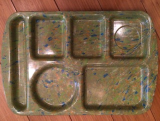 Stars Too has spattered chartreuse food trays with compartmentalized food and utensil divisions.