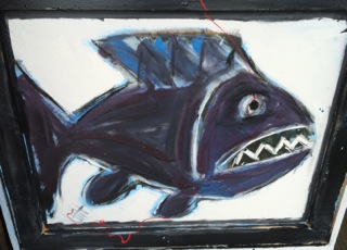 Jay Hill, creator of the paintings that fill space #1 at Stars has just arrived with (literally) a truckload of new work to somehow fit into his space. Filled with humor, sensitivity, color, and bold strokes these works on repurposed board, doors, and now furniture have become a favorite of our shoppers. Let's Shop snaps shots of the newer works arriving today. Join us daily from 11:00-6:00 and make space #1 your first stop.