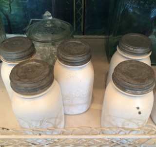 Dealer #81 always has a solid row of Ball and Kerr canning jars in screw tops and hinged styles.